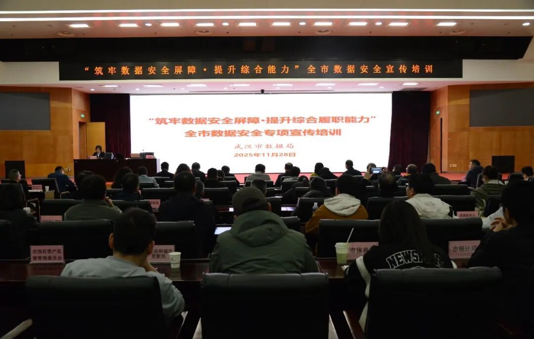 为进一步提高全市各区、各部门、各单位数据安全风险防控意识、增强防范化解数据安全的履职能力,11月28日,武汉市数据局举办“筑牢数据安全屏障·提升综合履职能力”全市数据安全宣传培训活动,邀请华中科技大学人工智能与自动化学院胡晓娅教授、杭州安恒信息技术股份有限公司董事长范渊进行专题授课,为数据工作者充实数据安全工作的“知识库”和“工具箱”。