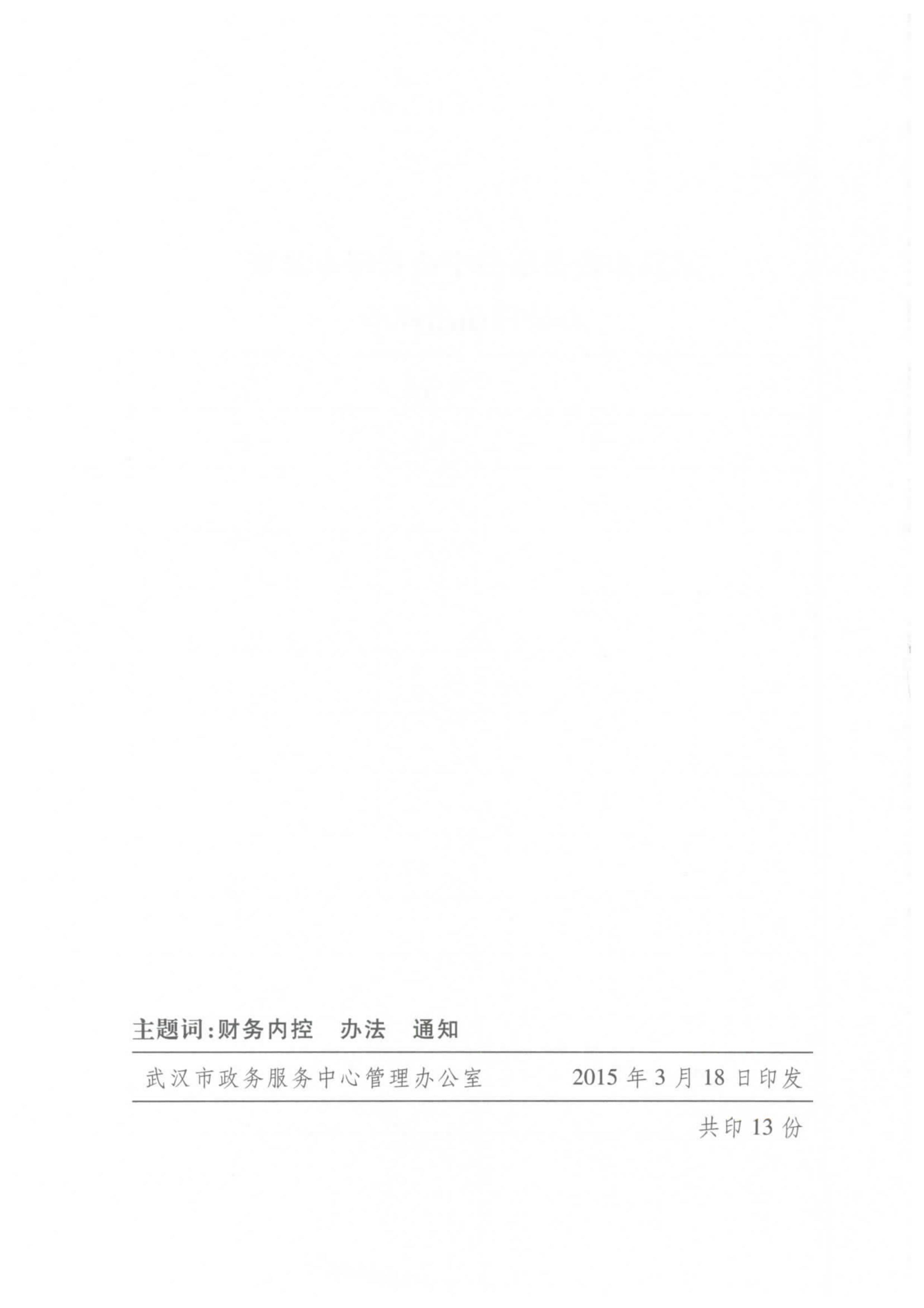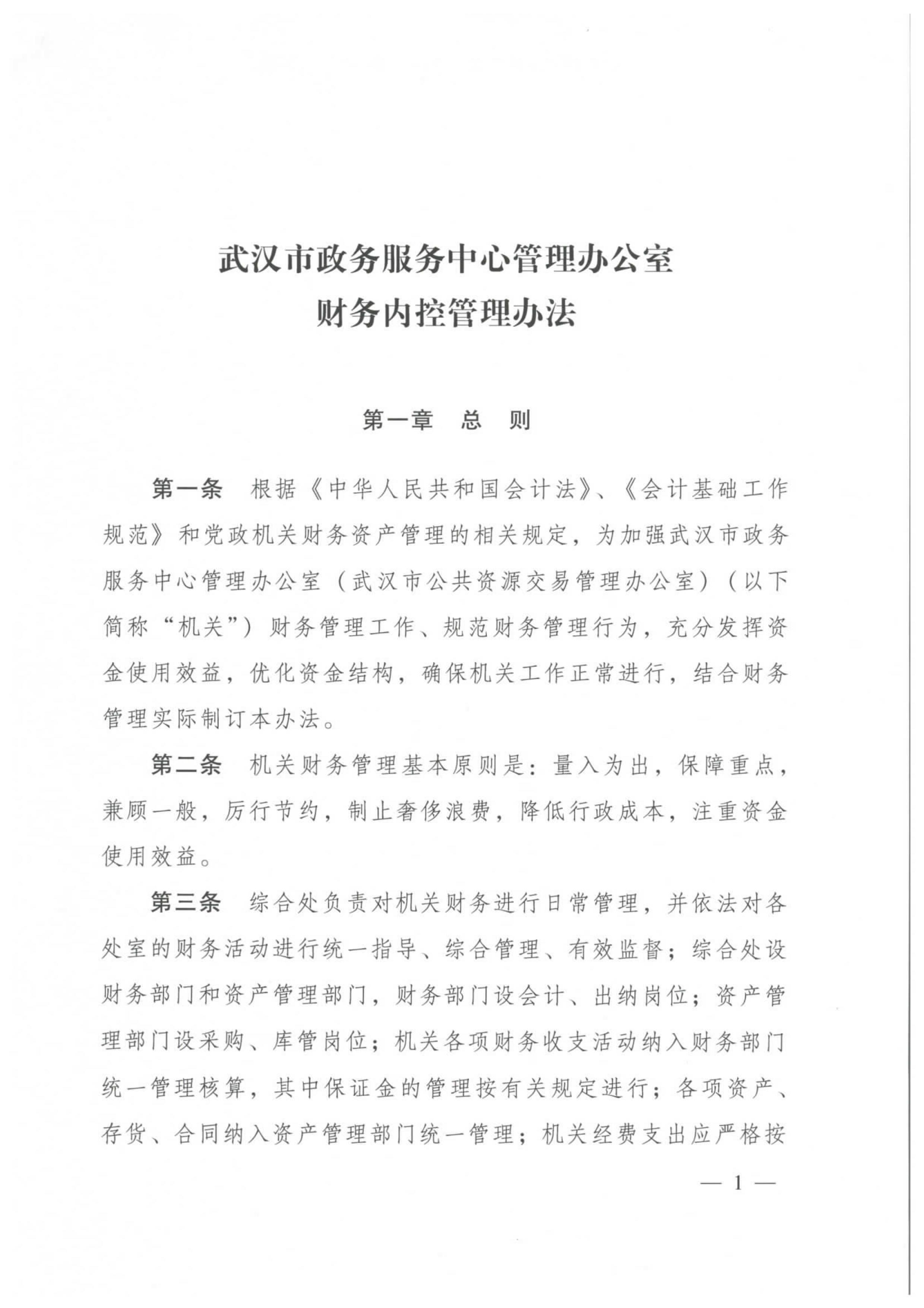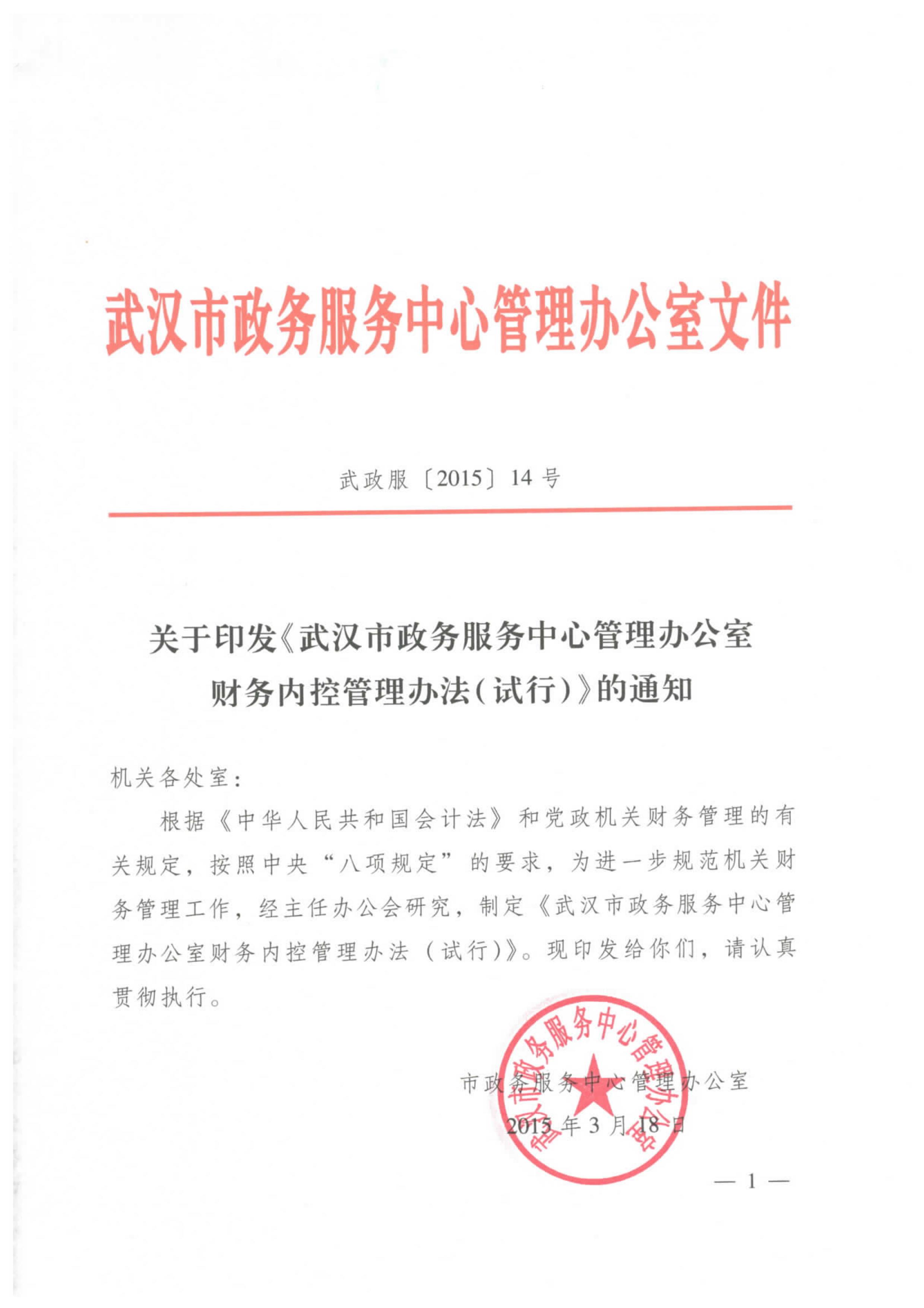 关于印发《武汉市政务服务中心管理办公室财务内控管理办法(试行)》的通知